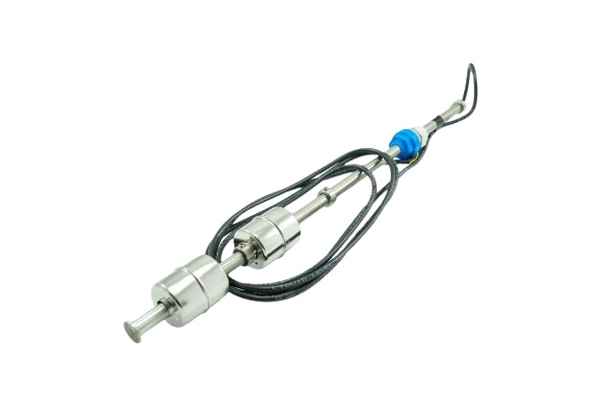 Поплавковый датчик уровня молока в колбе молокоприёмника имеет два поплавка - верхний и нижний.
